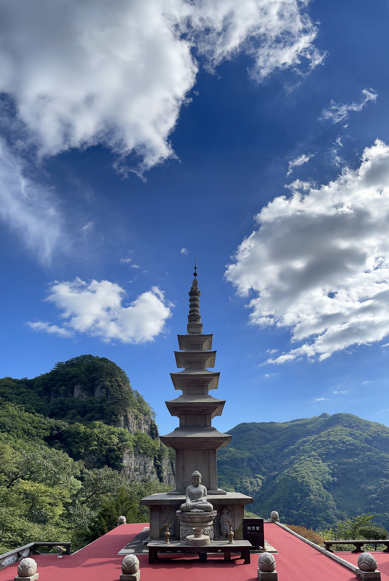 오후3시가 다 되어가는 시간이었지만 여기는 무조건 가야한다는 생각에 예정에도 없던 산행을 시작했다. 등산화로 고쳐 신고 삼십분 정도 올라가니 벌써 목적지인 청량사에 도착. 산 중턱에 있는 절인데 세상 꼭대기에 위치한 것 마냥 모든 것들이 내려다보이고 거대한 산 봉우리들이 절을 감싸고 있는 것이 꼭 다른 세상 같았다.