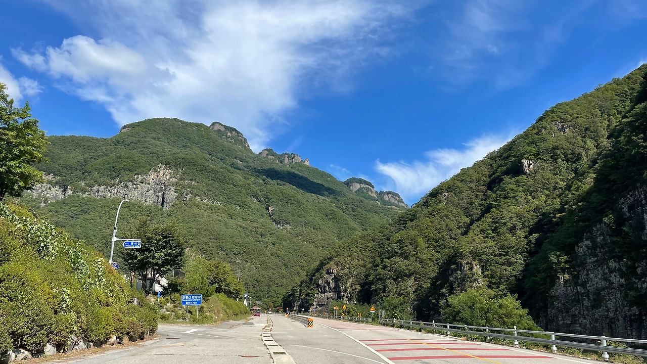 35번 국토를 타고 출발했다. 10분쯤 지났을까 바깥으로 보이는 놀라운 경치에 오 마이 갓- 소리가 절로 나왔다. 거대한 바위절벽이 파노라마처럼 사방을 둘러싸고 눈 돌리는 모든 곳이 초록인데다 낙동강 흐르는 소리까지. 호주 동부에 있을 당시 갔던 블루마운틴 국립공원이 떠올랐다. 한국에도 이런 곳이 있단 말이야? (알고보니 35번 국도는 한국에서 유일하게 미슐랭 그린가이드 별점을 받은 길이다)