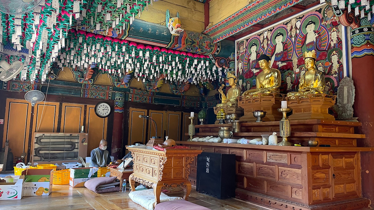 방금 전까지 사진을 찍어대며 날뛰던 내가 생각나 잠시 뻘쭘해졌다. 고분고분 말을 잘 듣게 됐다던 소처럼 나도 다시 차분함을 장착하고 법당으로 들어갔다.