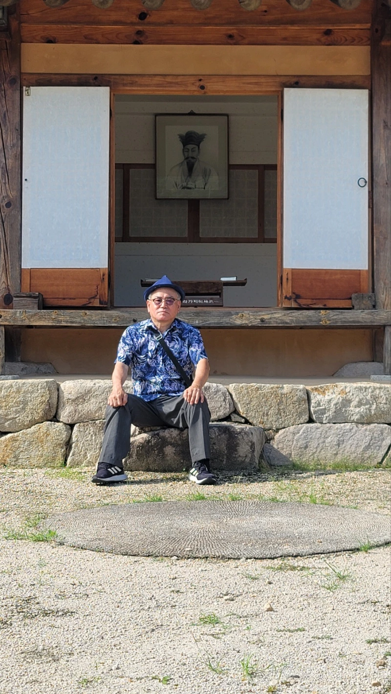 드디어 짙은 녹색의 숲을 배경으로 있는 선생의 생가와 그 위로 올라가는 돌계단이 보이고, 그 왼편에는 선생의 생가에 관한 안내 표지가 있다. 그런데 문제는 생가로 올라가는 돌계단이 문제다. 내가 이제는 하체가 너무 약해져서 지팡이를 짚고 있어도 혼자 돌계단을 오르기가 쉽지 않다. 잘못 넘어지면 치명적인 부상을 입을 수도 있다. 잠시 생각했다. 그냥 여기서 선생을 그리고 추모하는 것으로 끝낼 것인지 아니면 기어 서라도 올라갈 것인지를 결정해야 한다. 주변에 아무도 없어서 체면 불고하고 엄금 엉금 기어서 올라갔다. 이 이야기는 나중에 이곳에서 만난 관리인하고 나눌 때 다시 언급할 것이다. 계단 위로 오르니까 오른쪽에 선생의 공적을 기리는 탑과 정면으로 생가로 들어가는 문이 있고, 그곳을 넘어서면 비로소 선생이 머물고 공부했다는 생가가 보인다. 물론 오래전 선생의 생가는 붙다 없어지고 후대에 다시 조성한 건물이다. 정면에 보이는 사랑채는 방이 3개인데 그중 하나에 사대 관모를 쓰고 눈이 부리 부리한 선생의 영정과 자그마한 책상이 보인다. 이곳에 잠시 서서 선생의 행적을 떠올려 보았다. 선생의 깨침이 그대로 나에게도 느껴지고, 선생이 수많은 사람들 앞에서 강론하던 모습도 보이고, 선생을 따르는 백성들의 함성도 들리는 듯하다. 그렇게 한참을 그 옆 돌계단에 앉아 생각했다. 그늘진 곳이라 바람도 불어서 시원하다. 파란 하늘에는 하얀 뭉게구름들이 솜사탕처럼 떠다닌다. 짙은 녹색의 숲이 울창하다. 이런 모습은 200년 전과 별로 다르지 않을 터인데, 어떻게 선생 같은 혁명가가 이 조용한곳에서 탄생할 수 있었을까? 인간을 공간적으로 한정된 존재로만 본다면 도저히 생각할 수 없는 모습이다. 하지만 인간의 마음은 온 세상을 담을 수 있을 만큼 크다. 수운 선생은 그 마음속에 백성의 고통, 조선의 약탈적 정치, 서구의 침략 등을 담은 것이다.