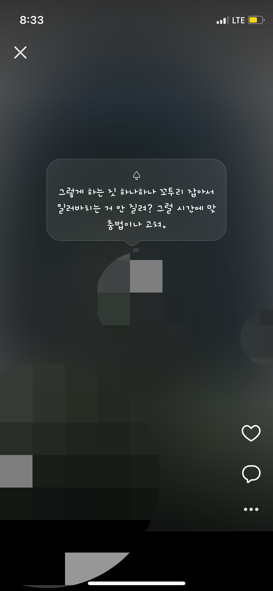 어제 카톡 프사를 내가 쓰는 소설 표지처럼 꾸미고 내 소설에서의 문구를 써놨다.
