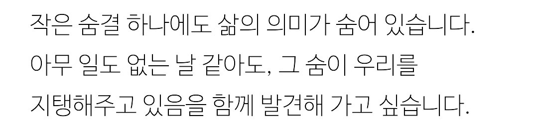 숨은 늘 곁에 있고, 그 결은 오늘도 나를 품어준다.