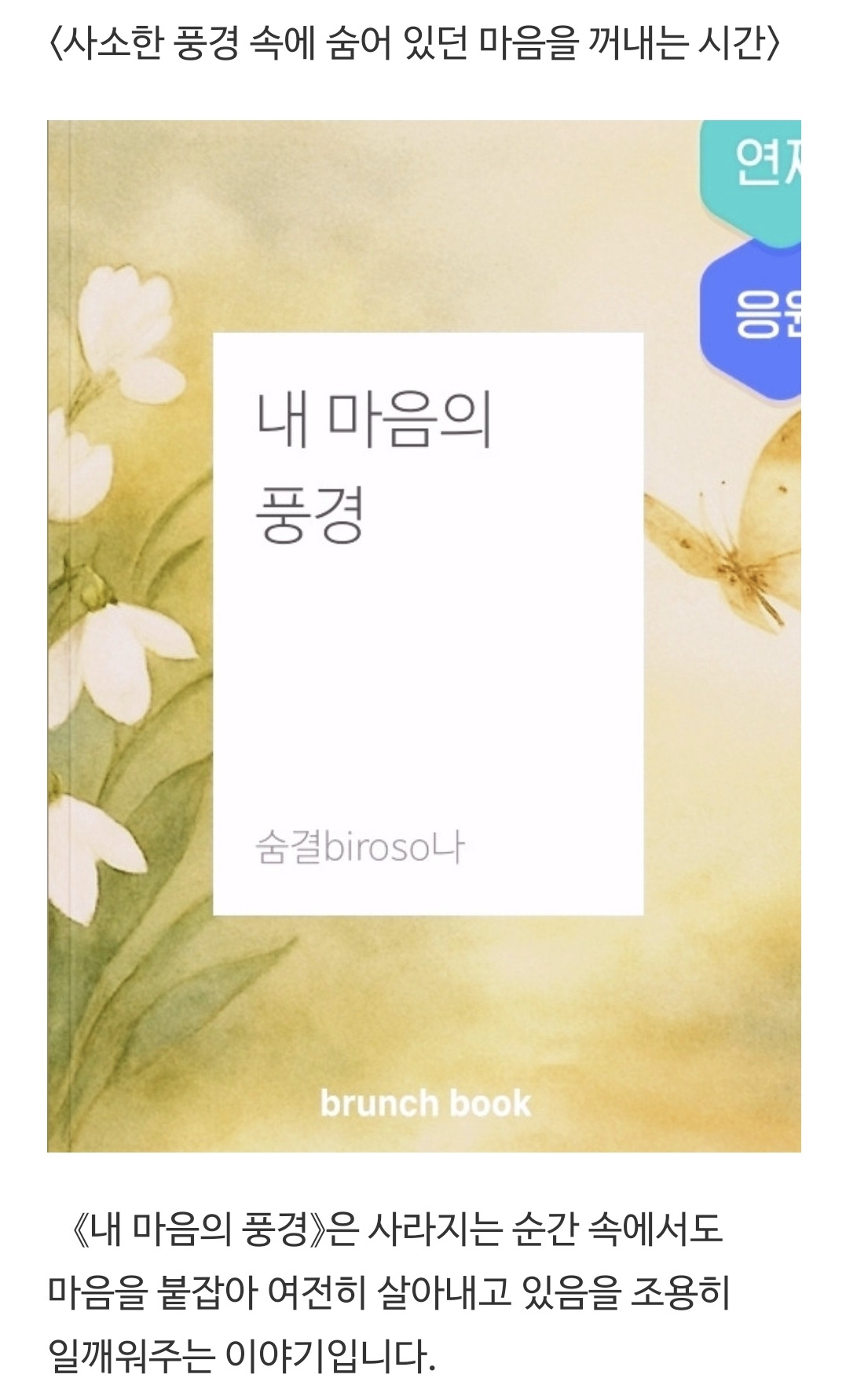 우리는 하루에도 수십 번 창밖을 내다 본다. 다음 약속, 밀린 일, 걱정거리에 마음이 갇혀 있을 때 시선은 풍경의 표면만을 훑고 지나간다. 그러나 삶의 깊은 이야기를 쓰기 시작하며 나는 시선을 멈추는 습관을 들였다.