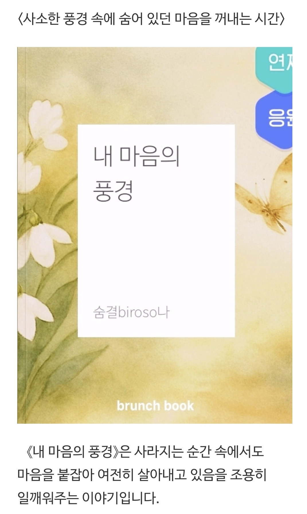 독자님께서도 잠시 멈춰, 마음속에 남아 있는 빛 하나를 떠올려보시길 바랍니다.