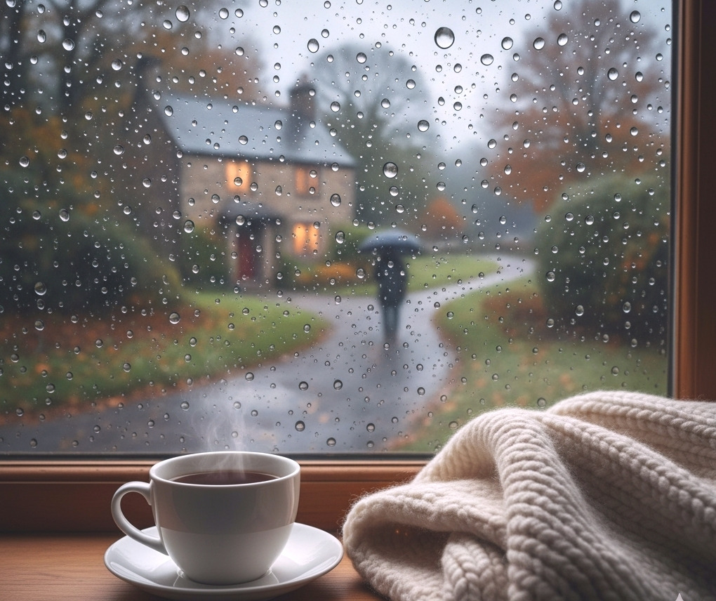 커피 향과 빗소리가 뒤섞인 공기 속에서