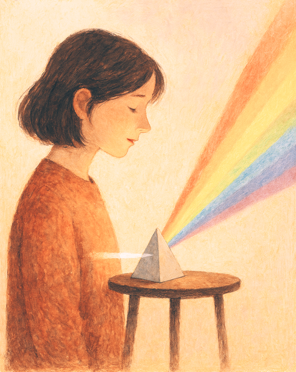 그럴 땐 잠시 멈춰서 하늘을 봅니다. 구름 사이로 흘러나오는 햇살이 흰빛으로 번지다가 창문 유리에 스치며 조용히 일곱 가지 색으로 갈라집니다.