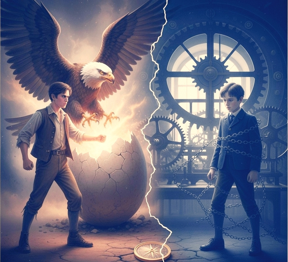 알을 깨고 나와 자기만의 길을 걷는다는 것은 아이뿐 아니라 부모에게도 큰 고통과 불안을 안겨준다. 우리가 아이를 기성세대의 수레바퀴에 태우려 하는 이유는 무엇일까? 그것은 그 길이 적어도 ‘보이는 길’이기 때문이다. 남들이 성공했다고 증명해 준 표지판이 있고, 실패해도 '최선을 다했다'는 면죄부를 얻을 수 있는 안전한 경로이다. 반면, 싱클레어가 선택한 '내면의 길'은 지도도, 표지판도, 성공 보장도 없는 깊은 숲길과 같다. 이 길이 아이에게 행복을 가져다줄지, 아니면 고독과 방황만을 안겨줄지 알 수 없기에, 부모는 본능적으로 그 길을 막아선다.