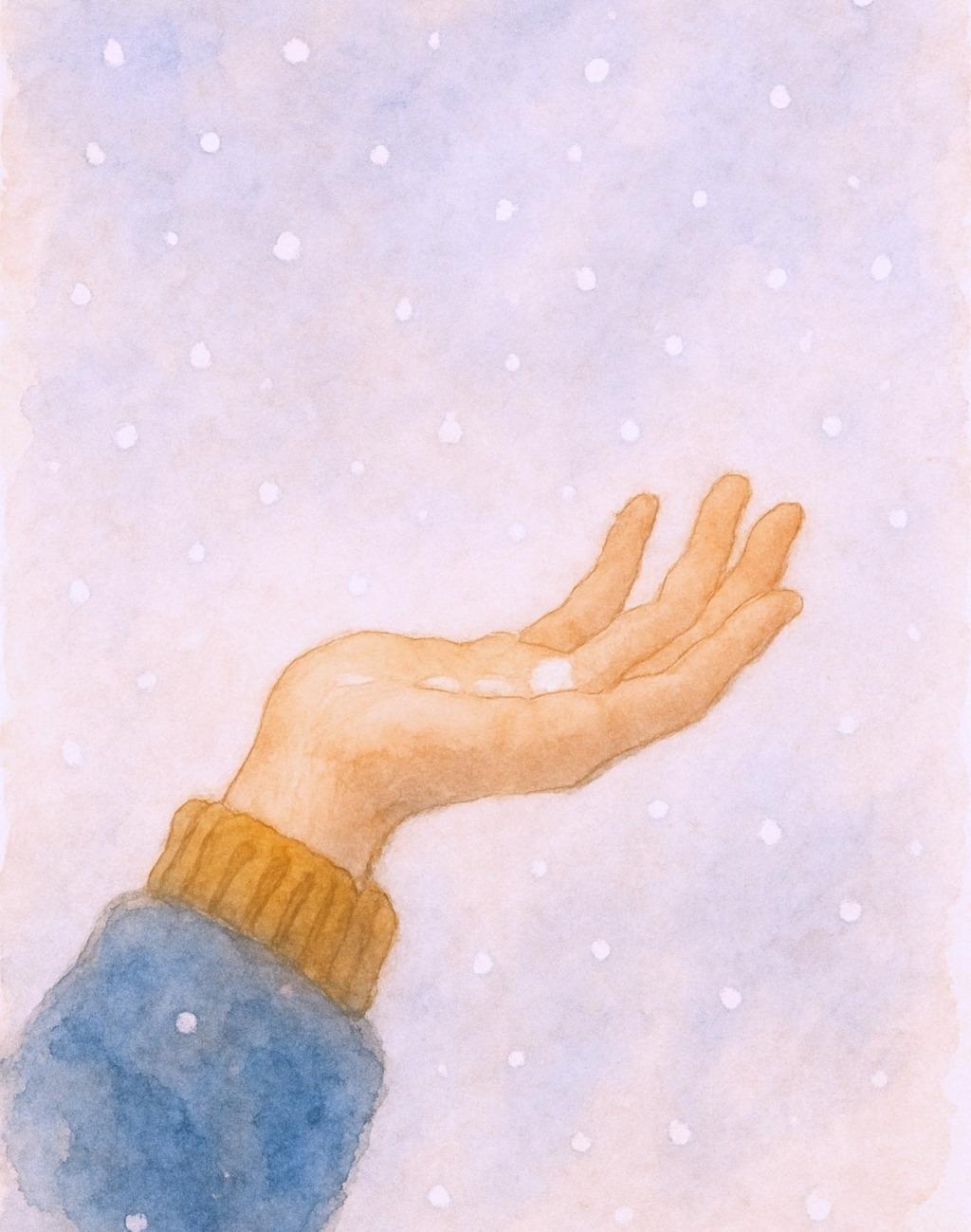 손바닥 위에 눈송이를 받았다.