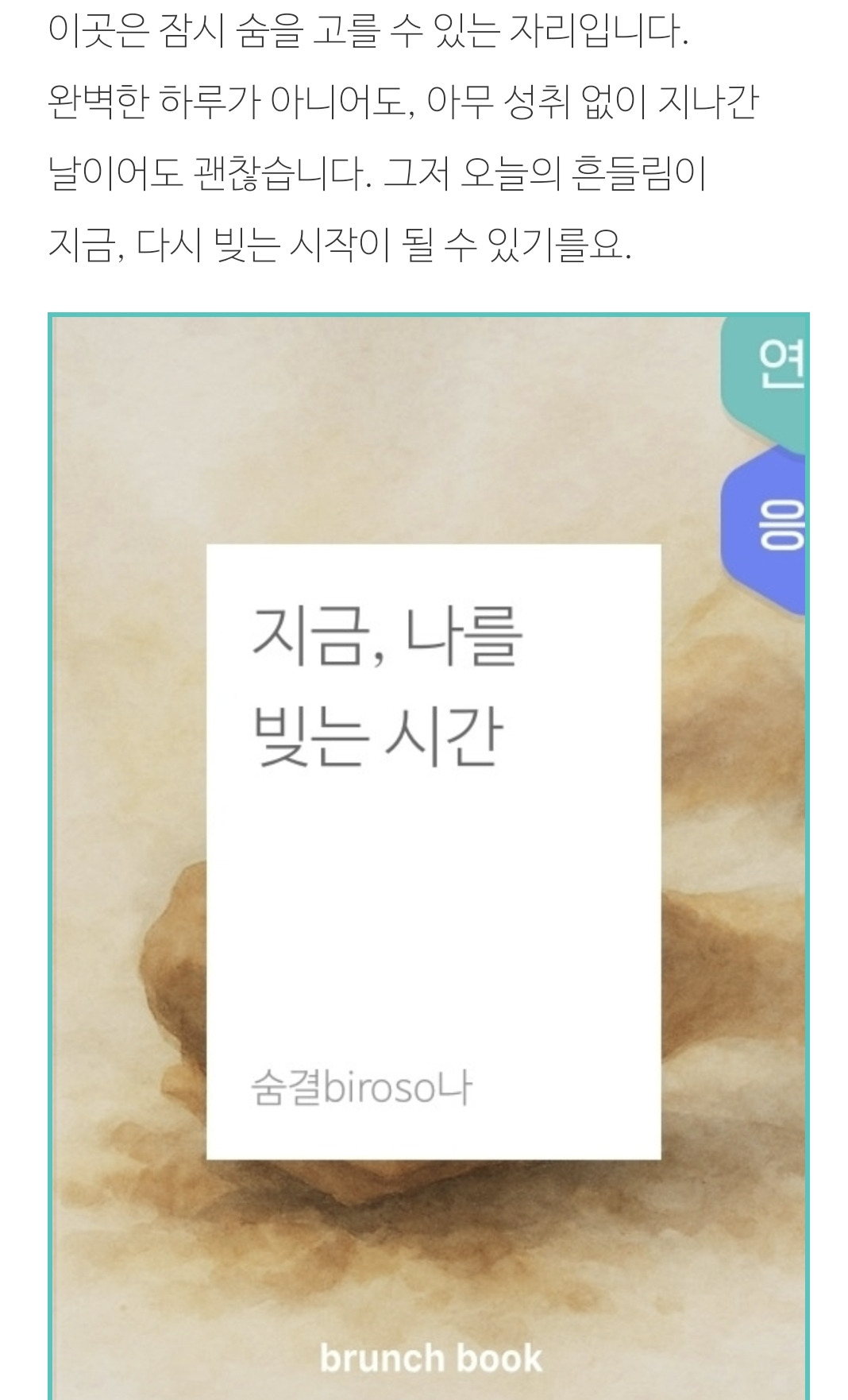이 글이 ‘지금의 자리를 정성스럽게 바라보는 마음’으로 닿기를 바랍니다.