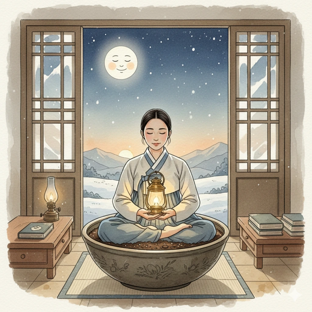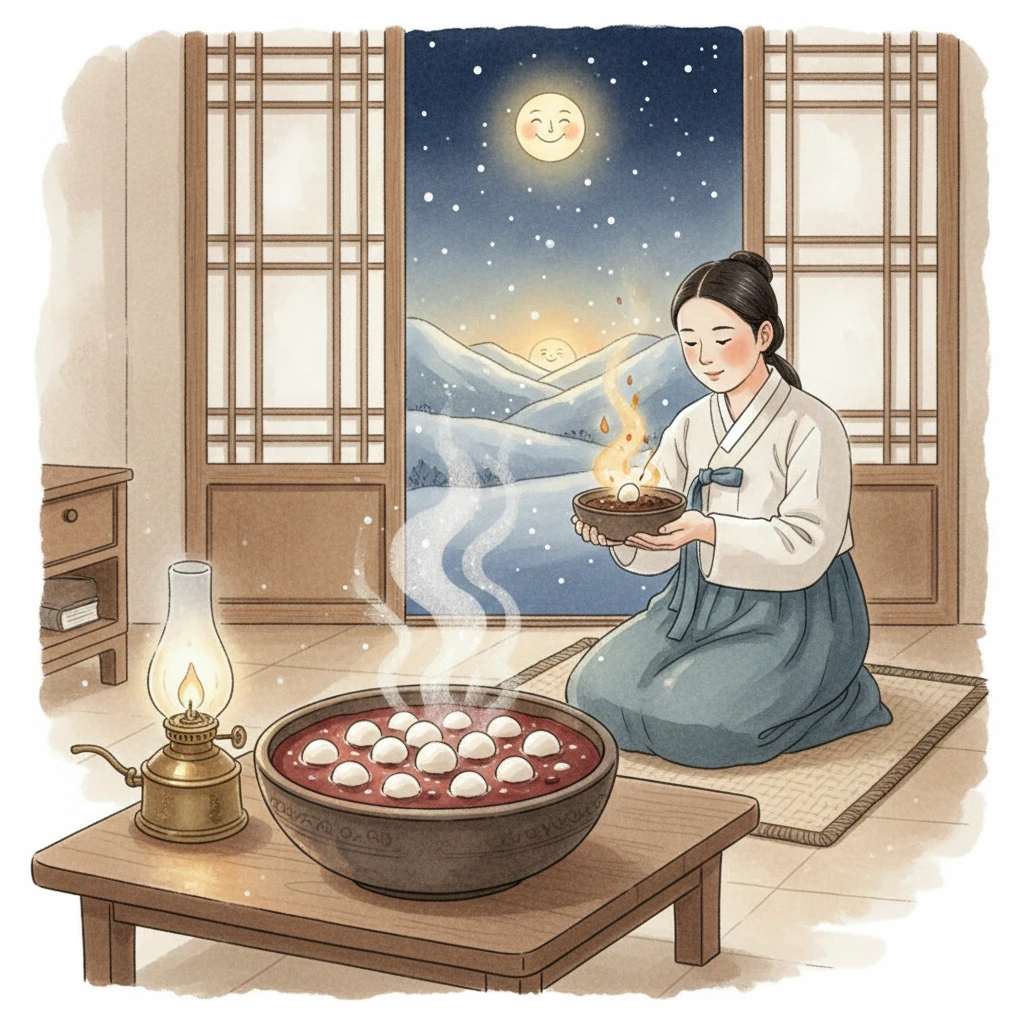 팥죽 속 옹심이처럼 동글동글하게 녹아든 지난 기억들과, 앞으로 펼쳐질 시간들에 대한 아련한 기대감. 이 모든 것을 품에 안고 우리는 조용히 기다립니다.