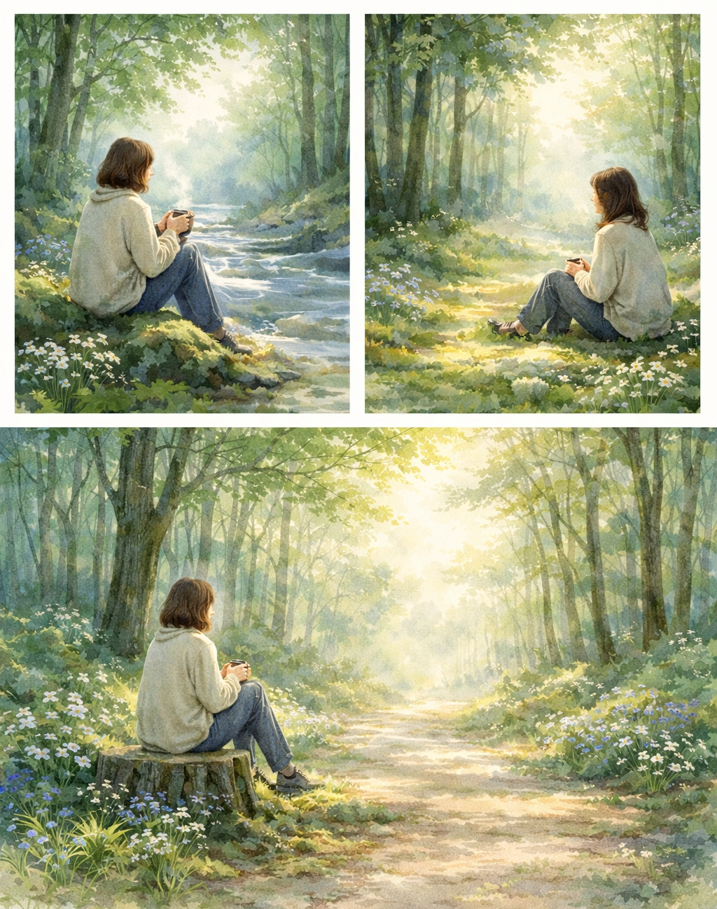 작은 고요가 모여 '나'라는 거대한 숲을 이룹니다. 그 평온함 속에 깊이 스며들어 온전한 휴식을 누리시길 바랍니다.