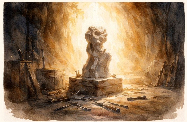 가장 깊은 동굴 속에서 홀로 조각칼을 쥐었던 정적의 시간들이 비로소, 광장 위에 나를 다시 세우는 단단한 뼈대가 되었다.