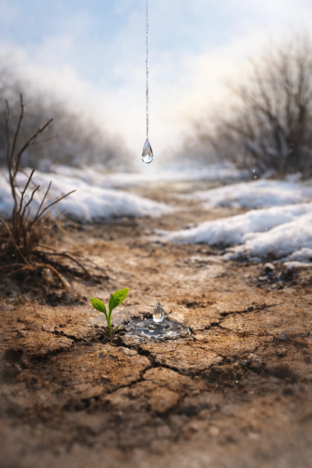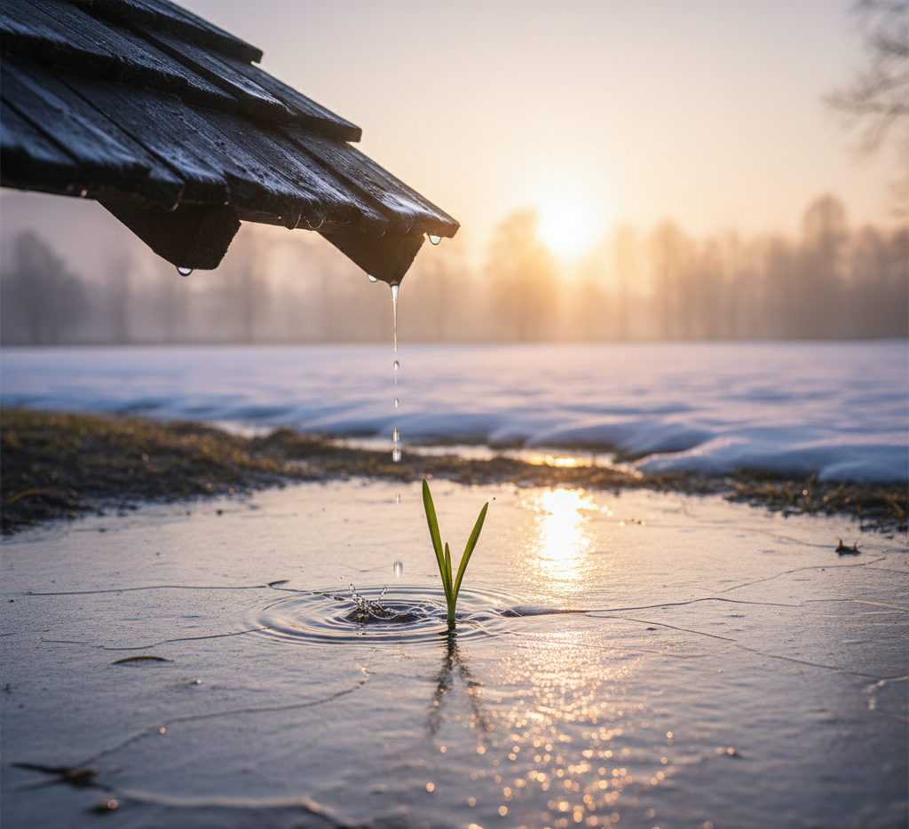 굳게 닫힌 얼음 문 뒤에서 두드리는 소리에 귀를 기울이면, 어느새 해묵은 눈을 밀어내고 차오르는 푸른 맥박의 진동이 발바닥을 타고 전해져 옵니다.