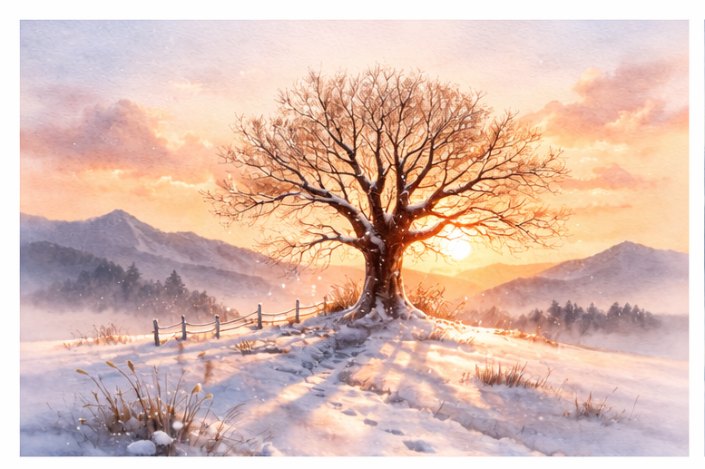 나는 한 그루 겨울 나무 앞에 멈춰 섰습니다.