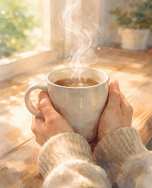 뜨겁지도 않고 차갑지도 않은, 그저 오래 들고 있을 수 있는 온도.