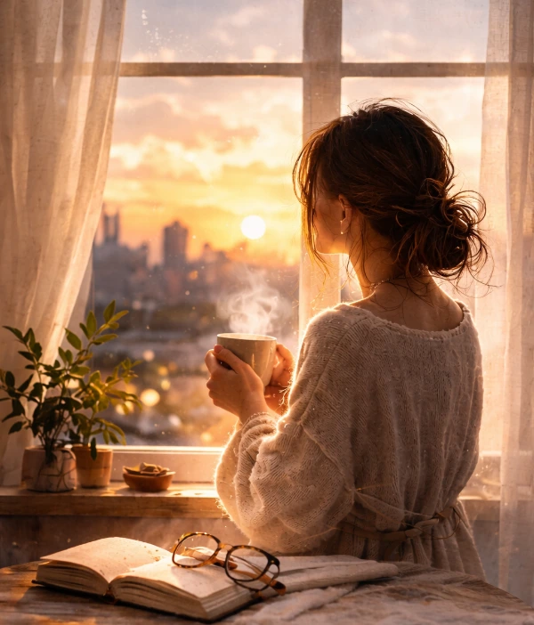 창밖의 하늘이 조금씩 밝아지고 있다. 밤이 물러난 자리에서 옅은 햇살이 천천히 골목을 밝힌다. 차를 한 모금 마신다.