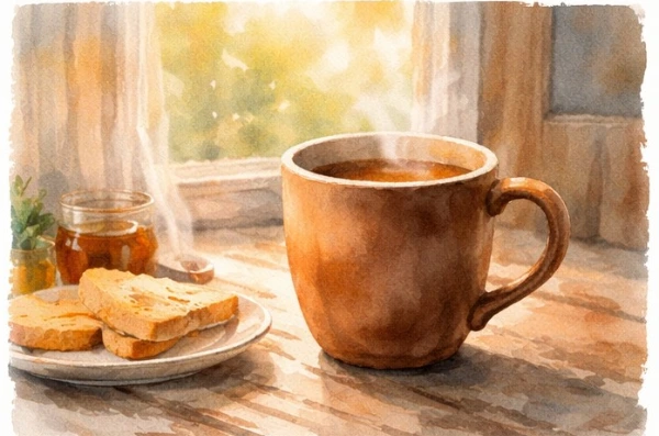 유난히 두꺼운 갈색 컵이다. 화려한 무늬도 없고, 모양도 조금 투박하다. 하지만 이 컵을 손에 쥐면 손바닥이 안정된다. 두께가 있는 도자기는 온기를 오래 붙잡는다.