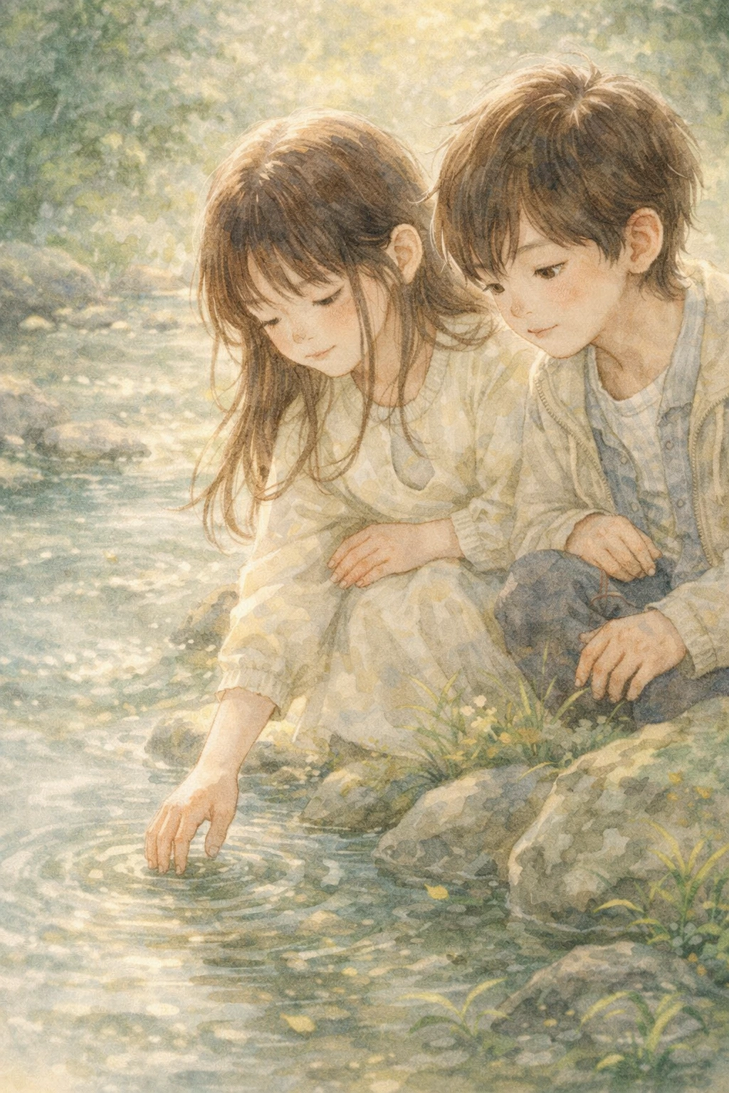 아이들은 시냇가에 멈춰 섰다.