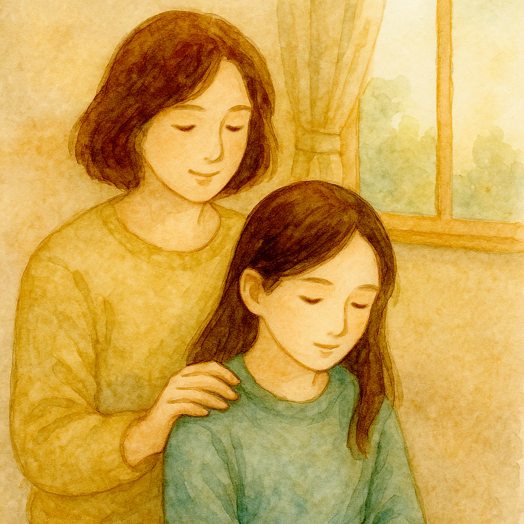 말없이 머리를 쓰다듬으며