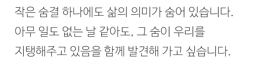 "당신의 하루에도 그 숨이 닿기를 바랍니다."
