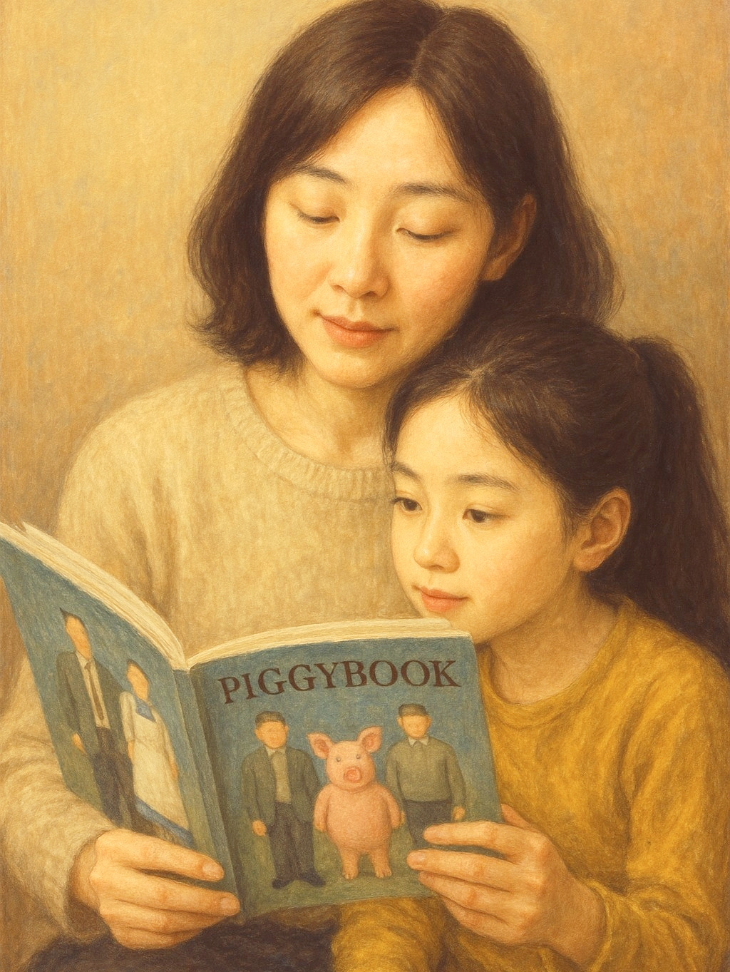 우리는 거실 한쪽에 나란히 앉아 앤서니 브라운의 『돼지책』을 읽고 있었다.