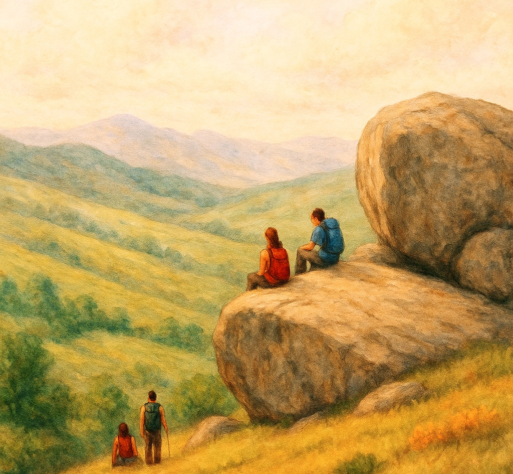 때로는 바위 위에 앉아 잠시 숨을 고르고, 세상을 바라보게 된다. 흘러가는 구름, 흔들리는 나무 사이에서 바위는 변함없이 그 자리에 있다.