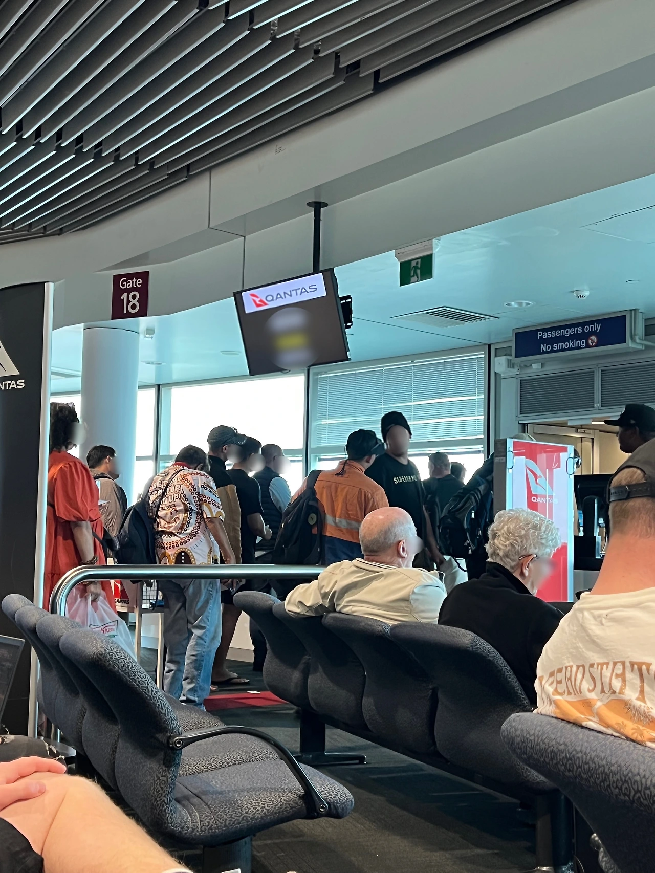 내 항공편(멜번-브리즈번)은 꽤 이른 시각에 있었기에 난 브리즈번 도착 후 갖은 여유를 부리며 점심을 먹고, 보딩 시간 직전 게이트로 이동했다. 'A타운이 오지니까 작은 경비행기가 뜨겠지?'라는 생각 외에 별생각 없이 게이트에 도착했는데, 벤치를 가득 매운 사람들을 보는 순간 '헉' 소리가 절로 났다.