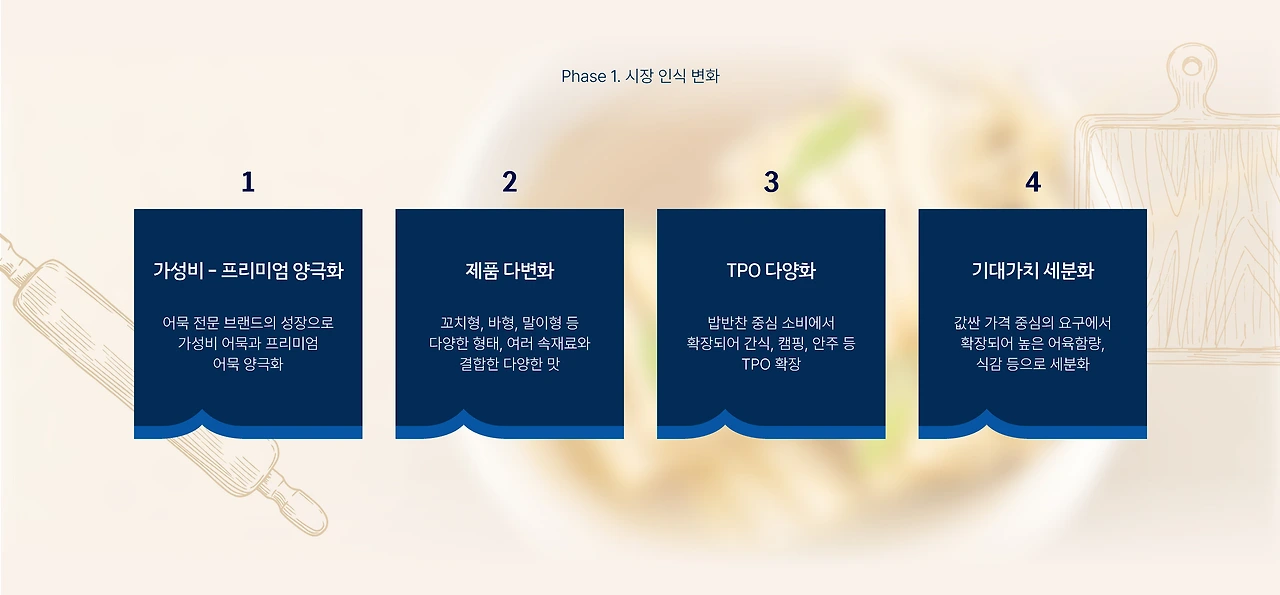 반찬으로 어묵을 소비하는 패턴에서 확장하여 아이들 간식, 캠핑용 음식, 가벼운 안주 등으로