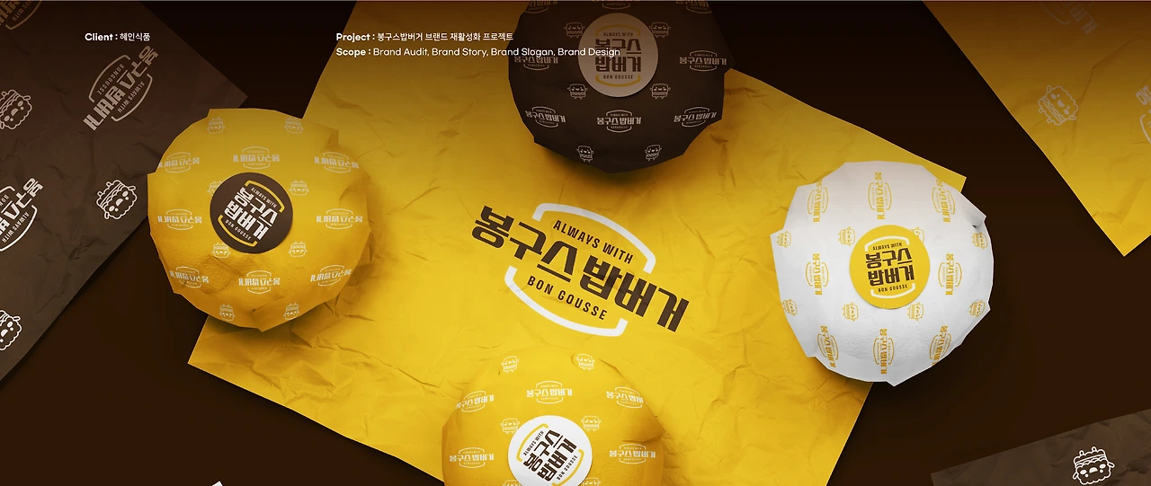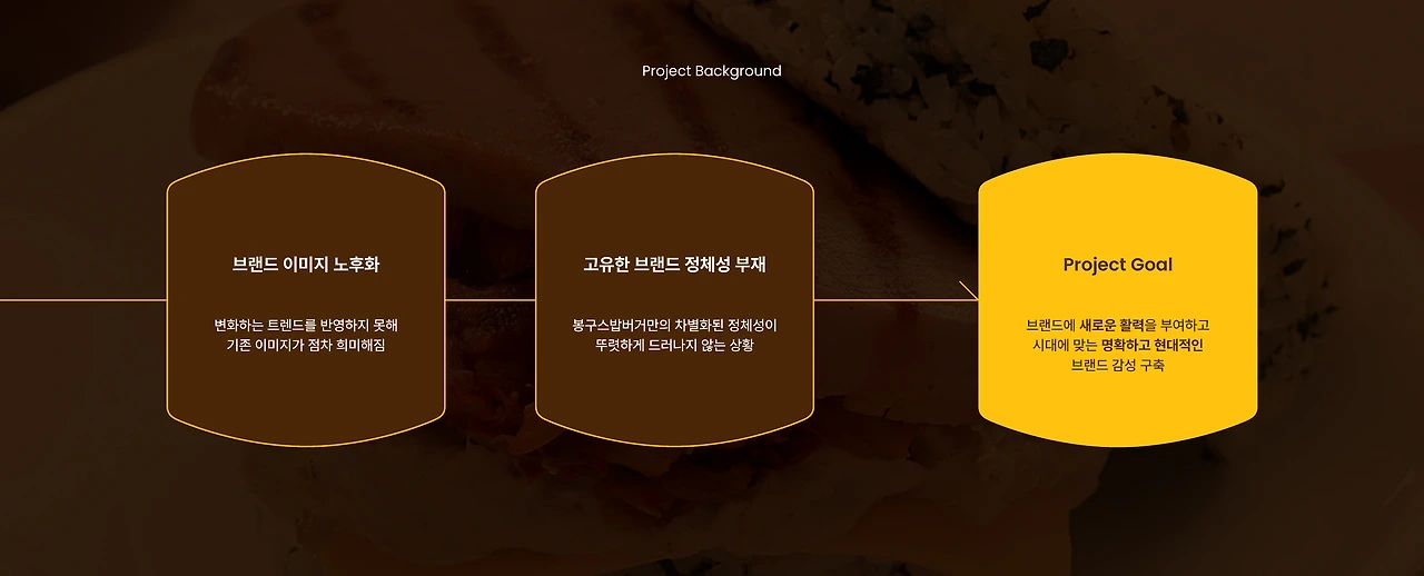 본 프로젝트의 목표는 봉구스밥버거만의 명확하고 현대적인 브랜드 이미지를 새롭게 정립하는 것이었습니다.