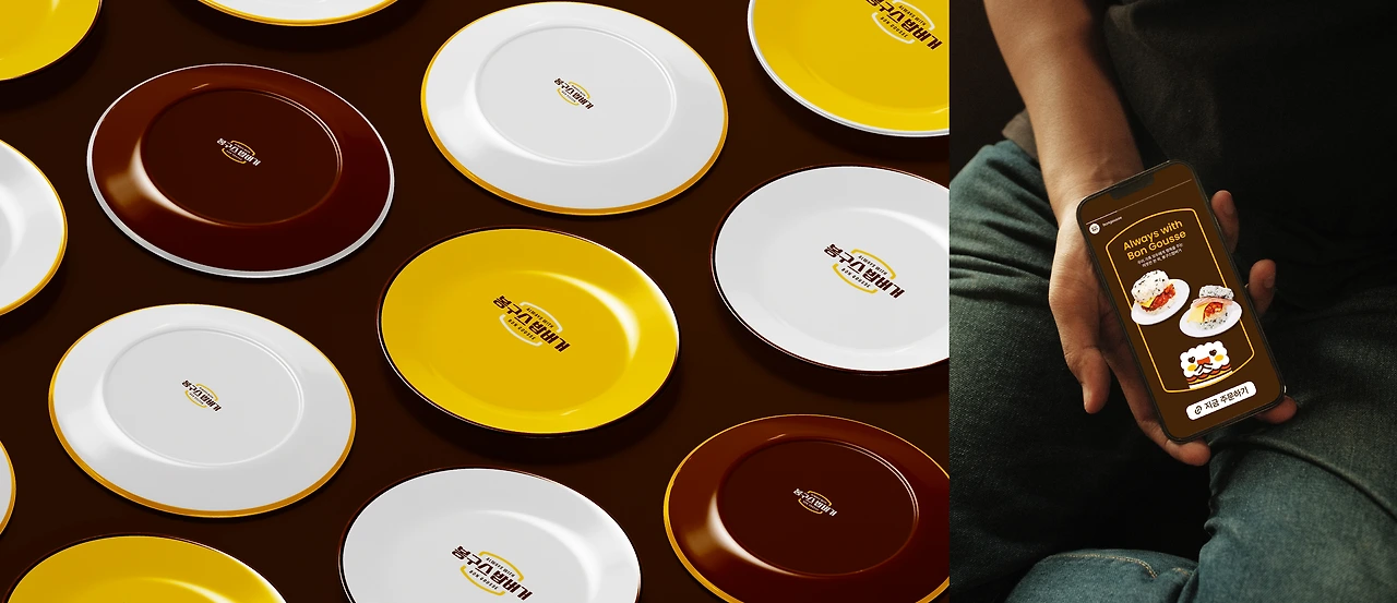 로고의 시각 요소를 그대로 연계해 개발된 이 그래픽 시스템은 밥버거의 형태를 시각적으로 자연스럽게 전달하면서 브랜드 아이덴티티를 다양한 접점에서 일관되게 표현할 수 있도록 설계되었습니다.