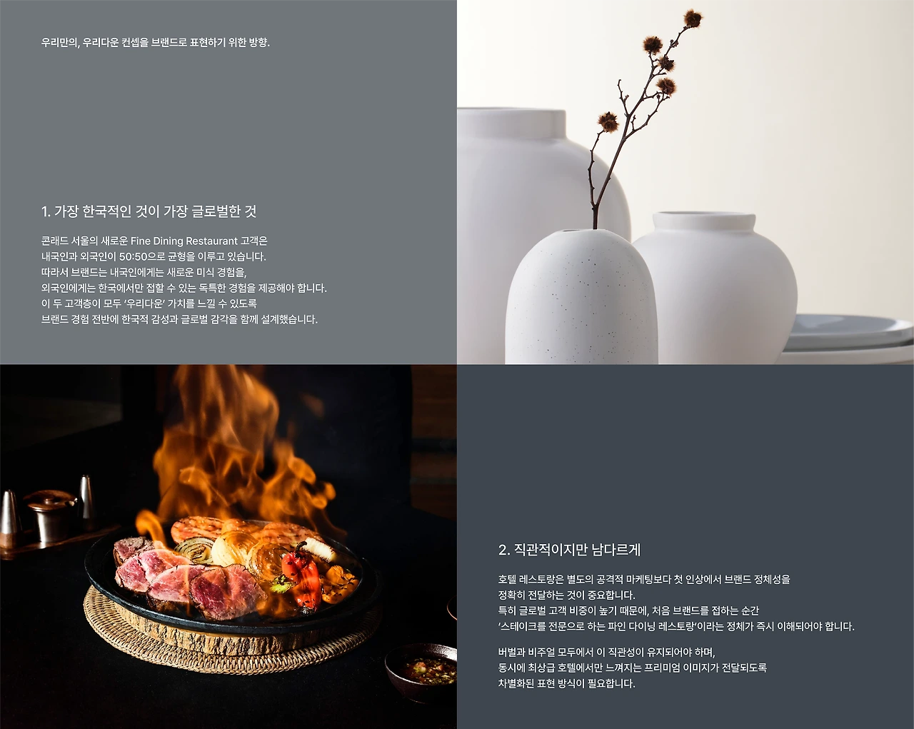 그렇다면 콘래드서울에서만 느끼고 경험할 수 있는 프리미엄 다이닝 레스토랑의 브랜드 경험을 어떻게 설계해야 할까요?