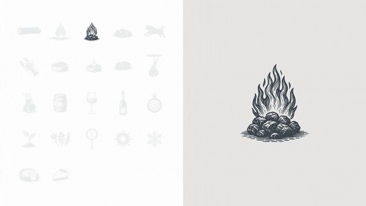 불꽃과 숯으로 완성하는 SUT은 브랜드 네이밍에서도 이야기하고 있지만,이를 시각적 요소로 함께 표현하면 외국인 고객에게도 전달력이 높아집니다.