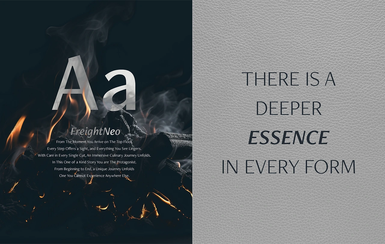 숯의 단면을 마침표 형태로 반영하여 스테이크의 정점, 더할 나위 없는 완성도를 우아하게 표현했습니다.