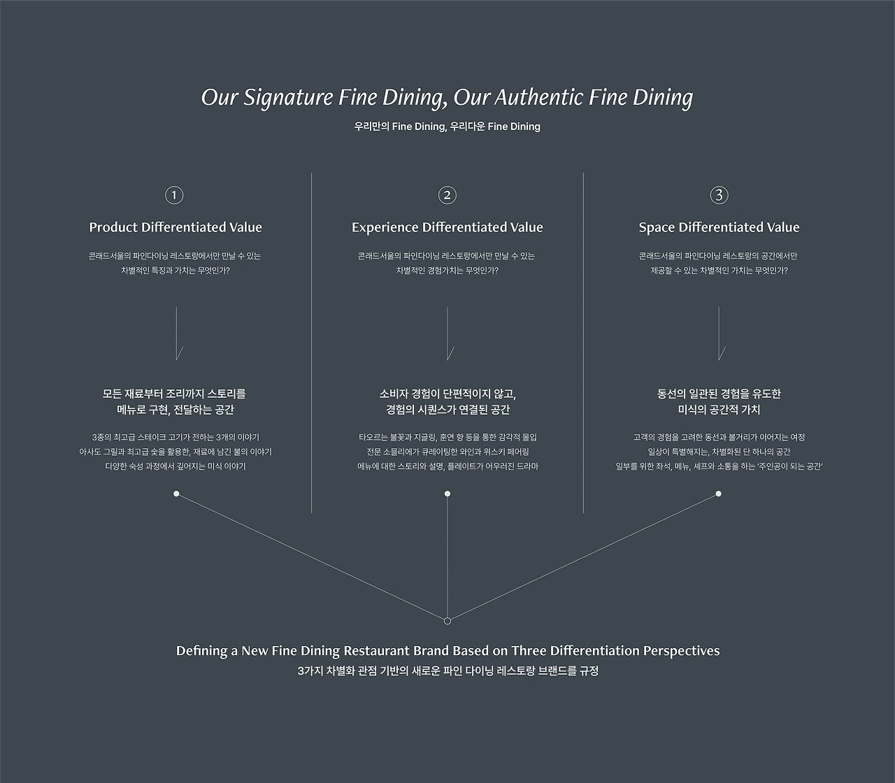 새로운 Fine Dining Restaurant의 정체성을 찾아가기 위한 여정은 3가지 관점에 대한 해답을 정리하는 것에서 찾았습니다.