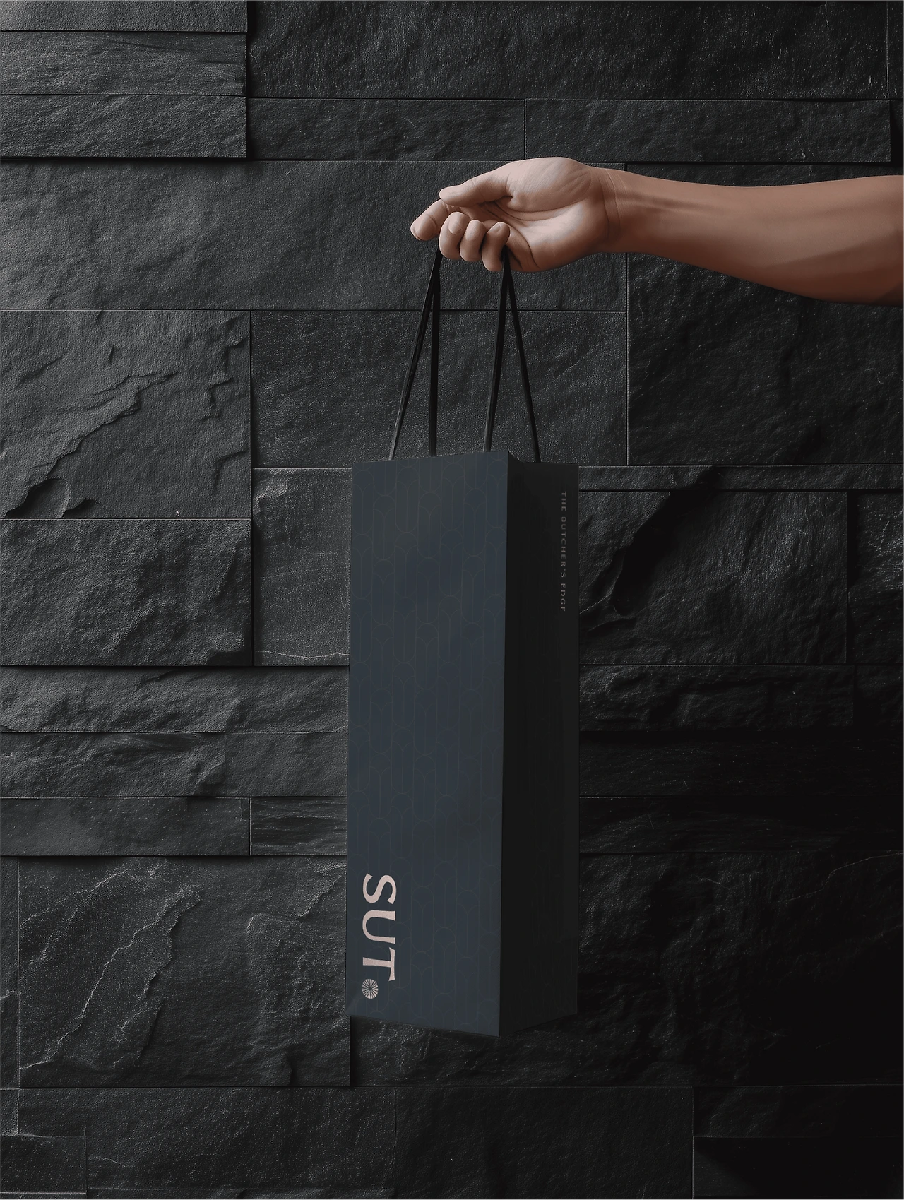 최고급 참숯을 사용하는 SUT의 특징을 시각적으로 표현하기 위해 ‘숯’을 그래픽 요소로 활용했습니다.