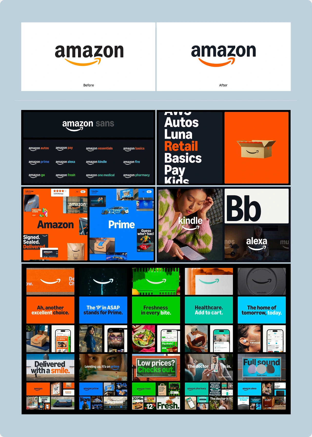 Prime, Fresh, AWS 등 다양한 서비스가 서로 다른 톤과 이미지를 사용하던 문제를 해소하고,