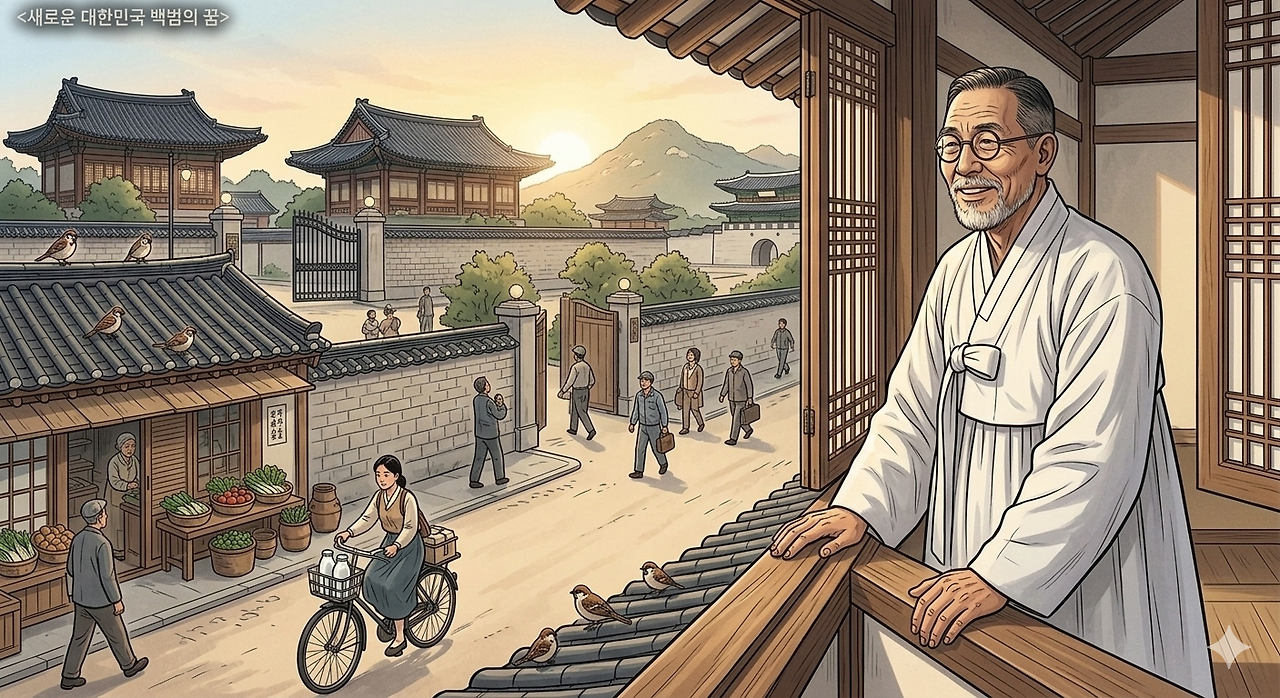 김구는 창문을 열었다. 빗물에 씻긴 서울 거리가 깨끗했다. 어디선가 새소리가 들렸다.