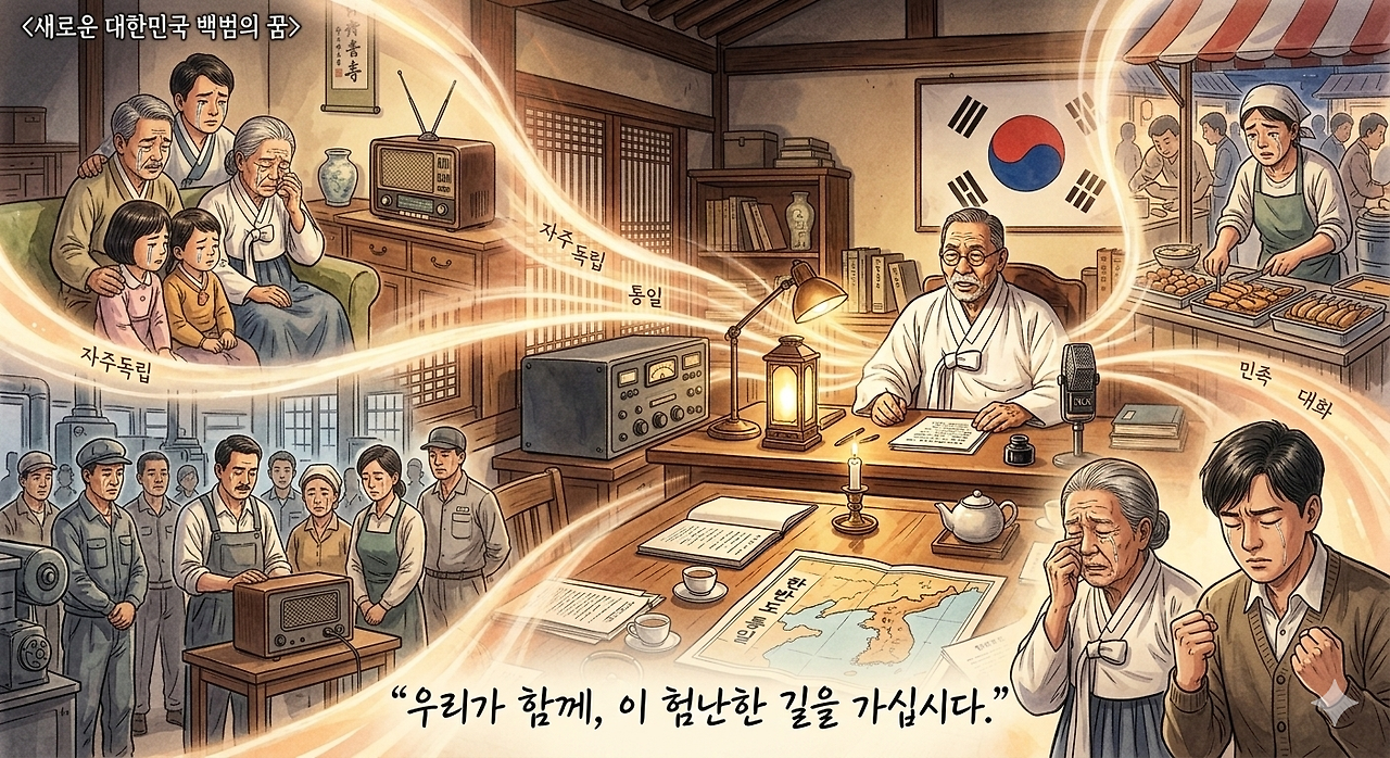 전국의 라디오에서 김구의 목소리가 흘러나왔다.