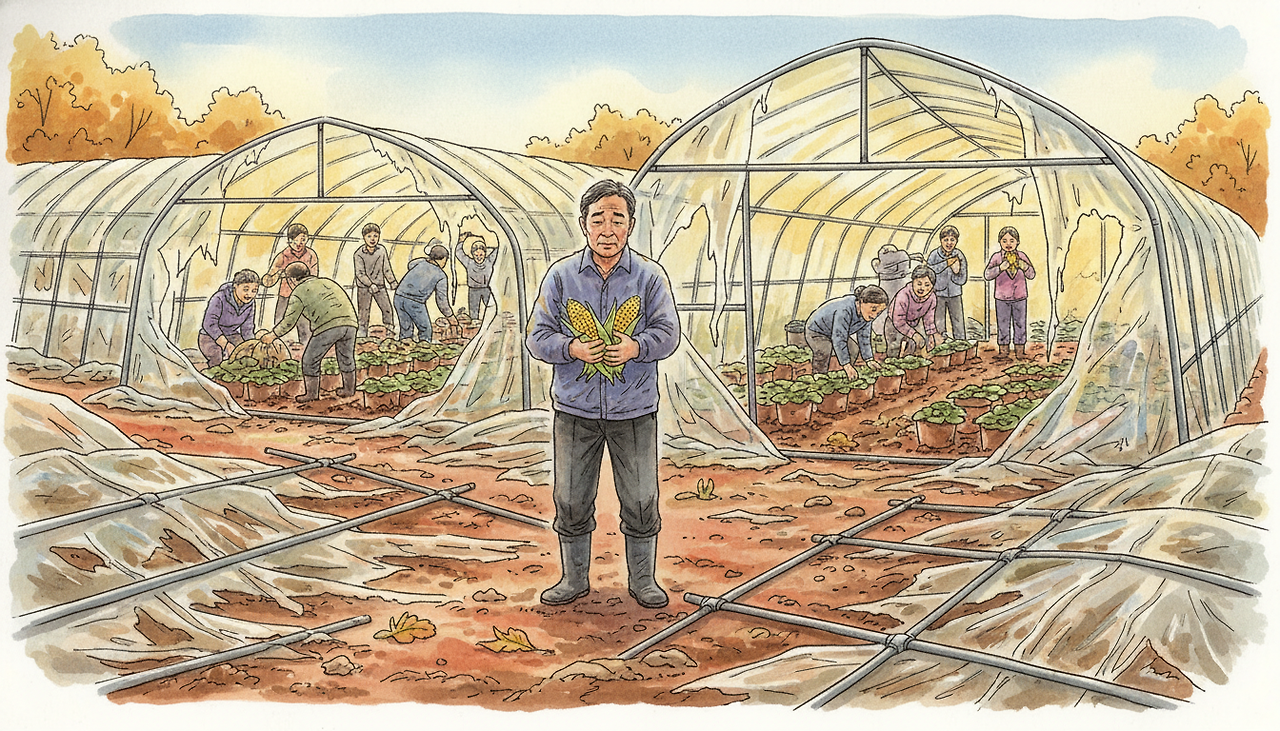 뼈대를 다시 세우고, 찢어진 비닐을 걷어내고, 진흙에 묻힌 딸기 포트를 하나씩 꺼냈다. 살릴 수 있는 것과 그렇지 않은 것을 가려가며 묵묵히 손을 놀렸다. 태양은 뜨거웠고, 비닐하우스 안은 더욱 후텁지근했다. 땀이 눈을 타고 흘러내렸다.
