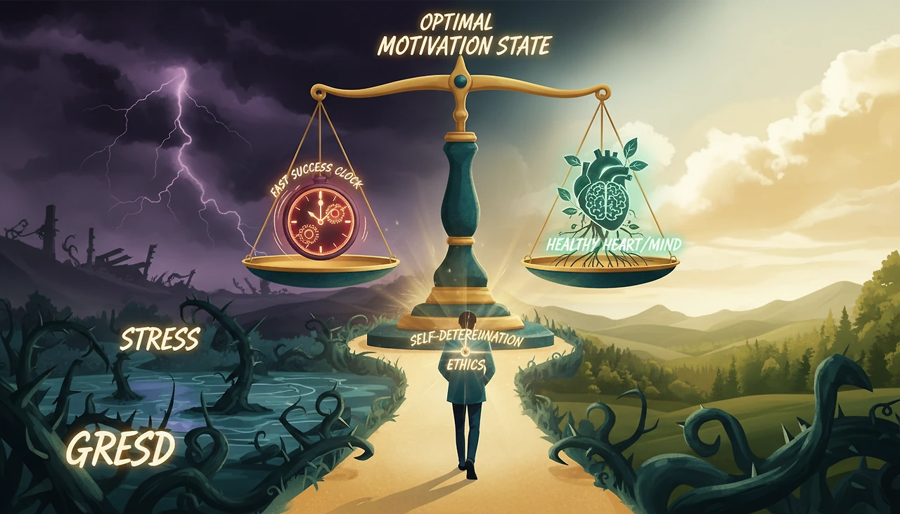 성과를 빨리 이루고 싶은 바람은 인간이라면 누구나 품는 자연스러운 마음입니다. 하지만 심리학이 강조하는 ‘자기 결정성 이론’은 내적 동기와 외적 압력의 균형을 중요하게 여기죠. 시간만을 줄이려다 보면 어느새 몸과 마음에 거대한 스트레스가 쌓이고, 이로 인해 인간관계나 윤리의식마저 무너질 수 있습니다.