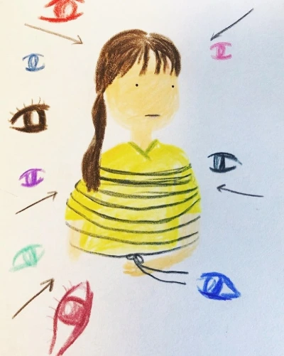 (사주가 타인의 시선을 의식하는 겁재계열 십신으로 지나치게 치우쳐 있다)그녀는 이상적 자아상이 지나치게 높아 현실의 자신에게 만족하기 힘든 인물이다.