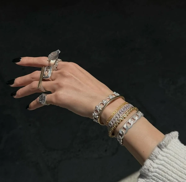 손등 위에 겹겹이 쌓인 반지들은 마치 자기들끼리 수다를 떠는 것 같다.