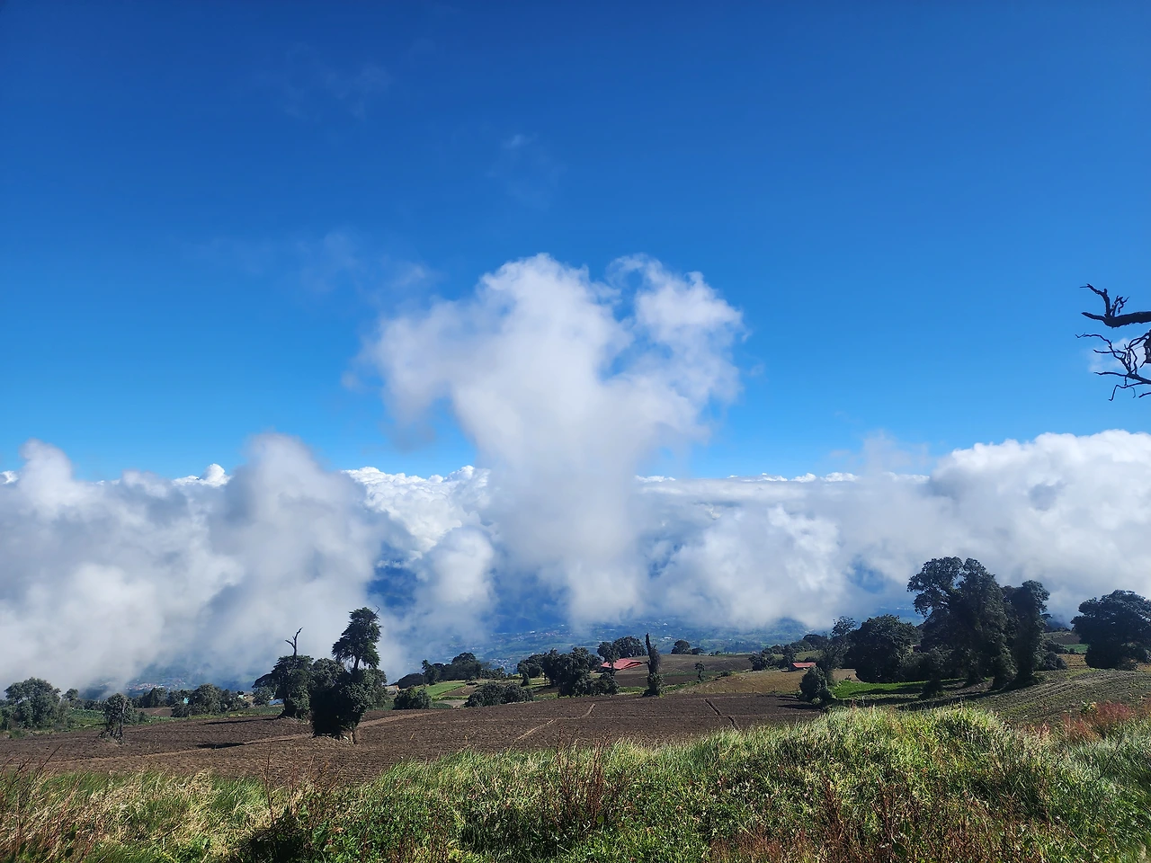 위에서 화산을 가렸던 구름이