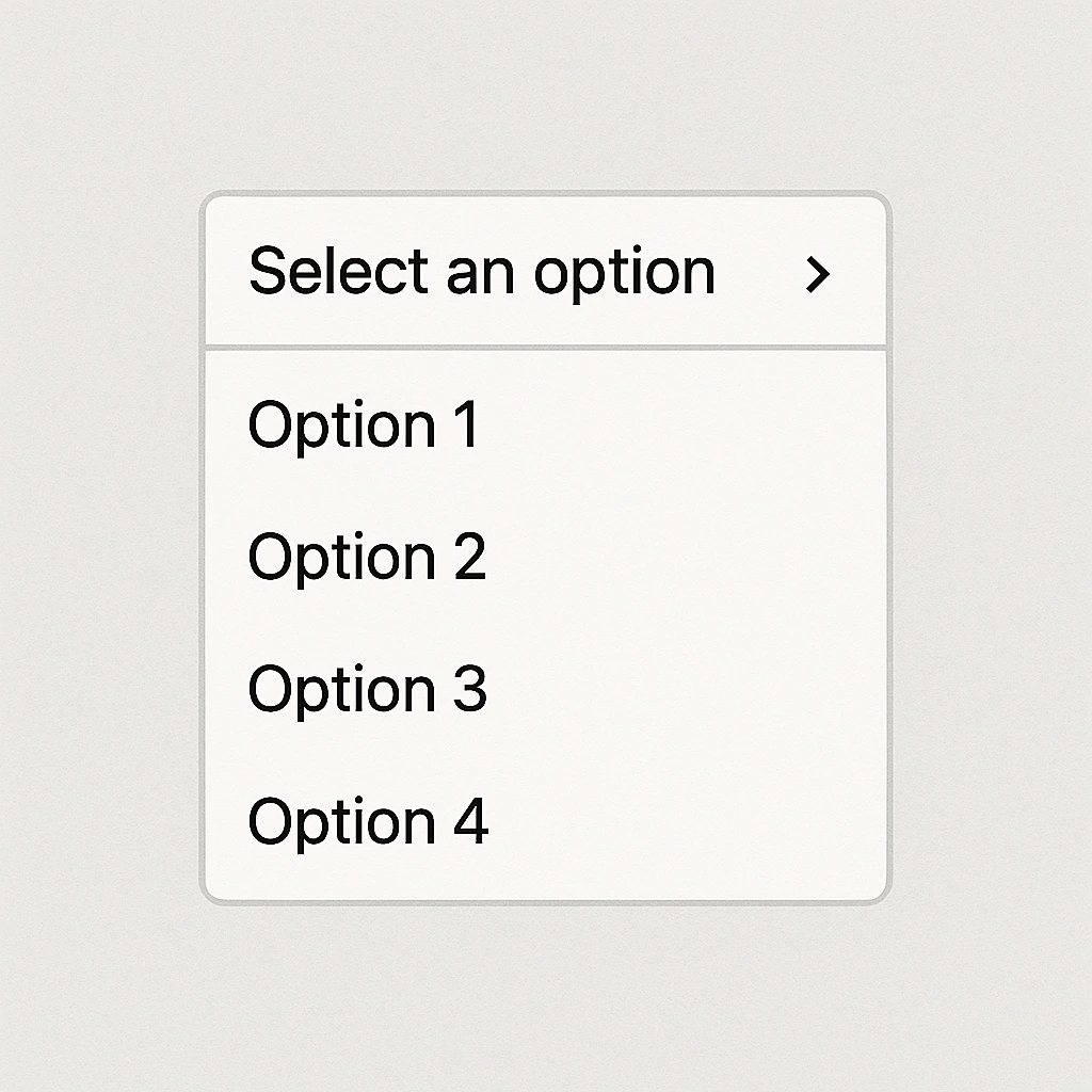 사용자가 리스트에서 하나의 옵션을 선택할 수 있도록 하는 컴포넌트. 기본적으로 닫힌 상태에서 선택된 값만 보이고, 클릭시 펼쳐져 다양한 옵션을 보여준다.