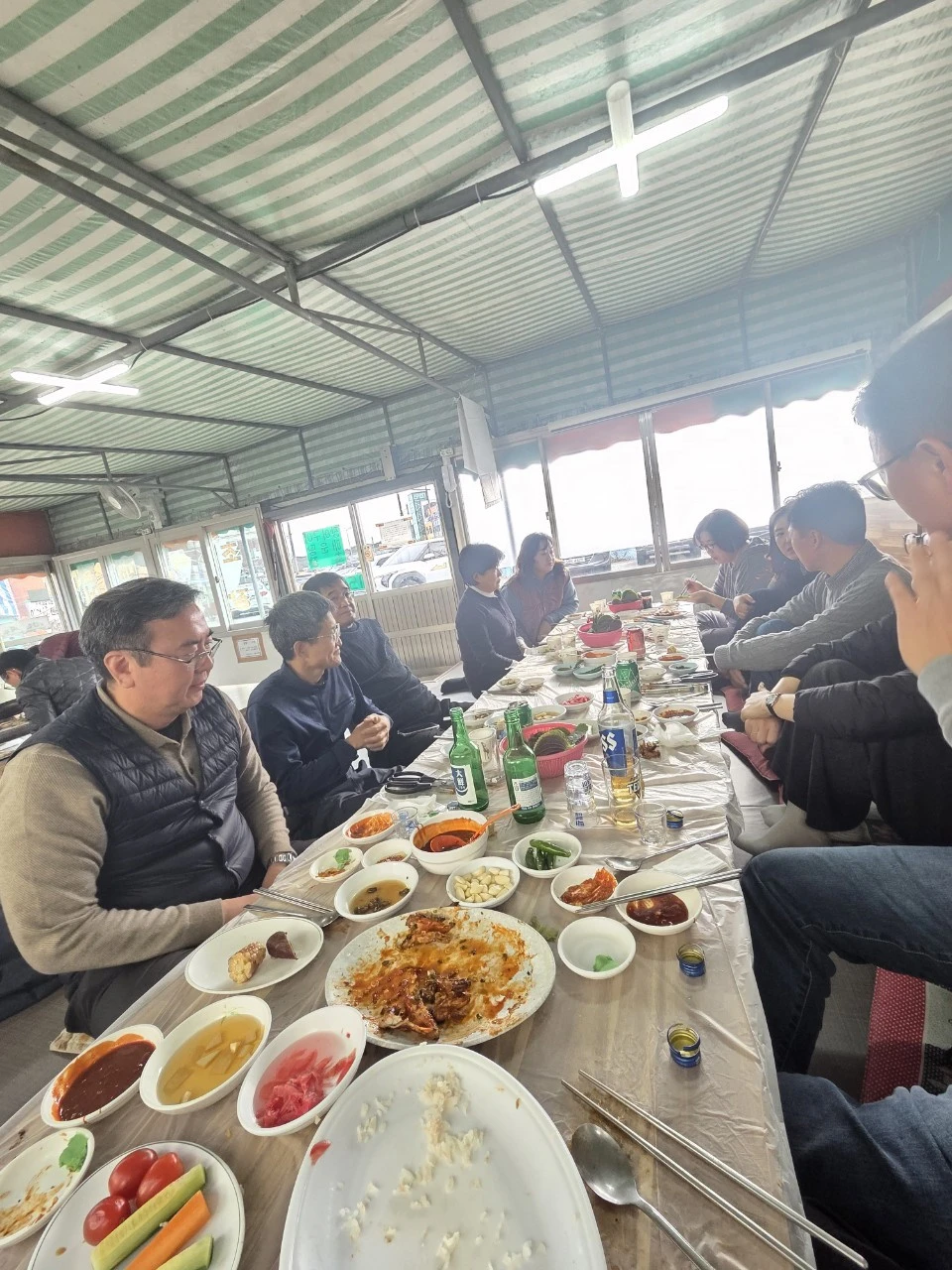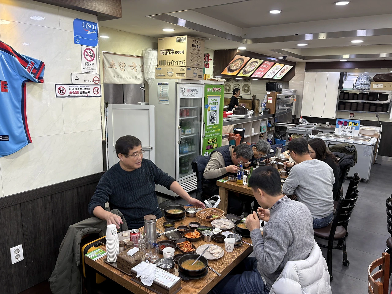 2025년 12월 20일, 부산역 2층 대합실. 프로필 사진 속 납작한 얼굴들이 입체화하여 걸어왔다. 악수를 건네는 손바닥의 까슬한 감촉, 겨울코트에서 풍기는 섬유 유연제 냄새. 화면 속 말줄임표로만 존재하던 이들이 실체를 입자, 관계의 소멸을 걱정하던 내 불안은 맥없이 흩어졌다. 예정된 국밥집 줄이 길어 택한 옆 가게의 수육 백반. 고기는 다소 퍽퍽했고 국물은 밍밍했다. 그러나 상관없었다. 중요한 건 미각이 아니었다. 오랜만에 같은 속도로 숟가락을 들고 놓는 행위, 식탁 위로 달그락거리는 식기 소리와 섞이는 웃음소리의 리듬이었다. 그것만으로도 밥맛은 충분했다.