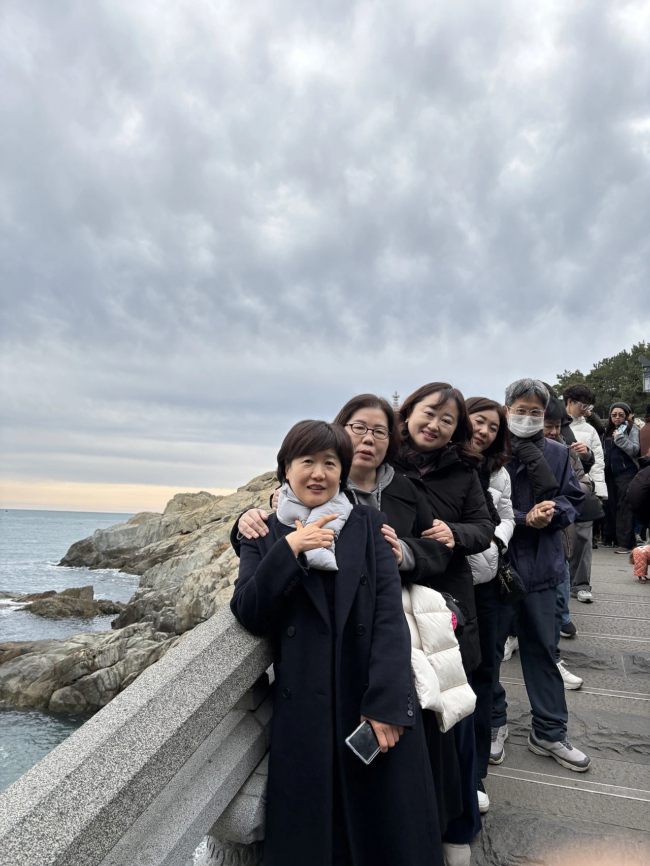 해안 산책로를 걷다 바다 위에 뜬 섬 같은 형상을 보았다. 대마도였다. 50킬로미터 밖의 땅이 저토록 선명할 수 있을까. 빛의 굴절이 빚어낸 착시인 줄 알면서도 눈을 뗄 수 없었다. 어쩌면 멀어진 우리가 다시 마주 앉아 웃고 있는 이 시간도 신기루일지 모른다. 하지만 허상이면 어떠랴. 지금 내 눈앞에 섬이 있고, 곁에 당신들의 숨소리가 있는데. 점심으로 택한 아나고회는 눈가루처럼 포슬포슬했다. 부산 방식대로 숟가락으로 회를 듬뿍 떠서 깻잎 위에 얹고, 붉은 초장을 끼얹었다. “회를 숟가락으로 퍼먹다니.” 동기들이 눈을 동그랗게 떴다. 낯선 식감에 탄성을 내뱉으며, 우리는 여행의 마지막 허기를 채웠다.