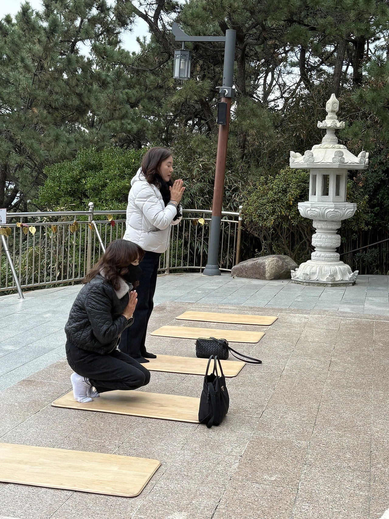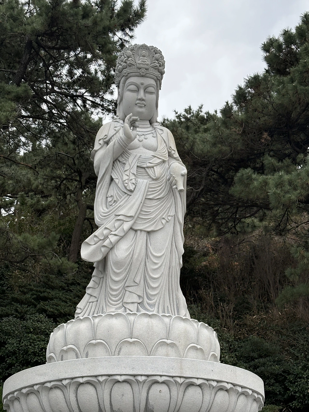 이튿날 찾은 용궁사는 바다를 등진 채 위태롭게 매달려 있었다. 내 시선은 정병(淨甁)을 거꾸로 쥔 관세음보살상에 머물렀다. 보통은 바로 들고 있을 병을, 내용물을 한방울도 남기지 않겠다는 듯 주둥이를 아래로 하여 쥐고 있었다. 중생의 번뇌를 씻어줄 감로수라 했다. 쥐고 채우는 것에만 골몰해 온 내 손과 달리, 그는 맑은 물을 아낌없이 허공으로 흘려보내고 있었다. 텅 빈 병을 쥔 석상의 얼굴이 무심한 듯 서늘했다.