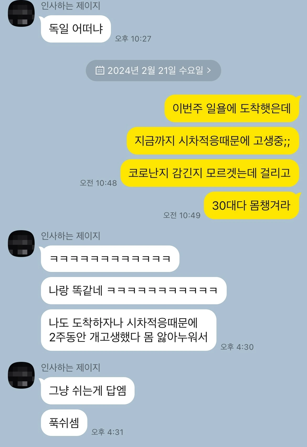 나는 무언가 직접 겪고 고생해보지 않고는 배우지 못하는 성격 같다. 친구들이 ‘시차적응 때문에 힘들겠다’라고 걱정해 주면, 시차적응을 극복하려면 어떻게 해야 하는지 찾아보는 것이 아니라 ‘나는 시차적응이 필요가 없던데? 시차적응은 개나 줘 버려~’라고 말하던 게 나다.