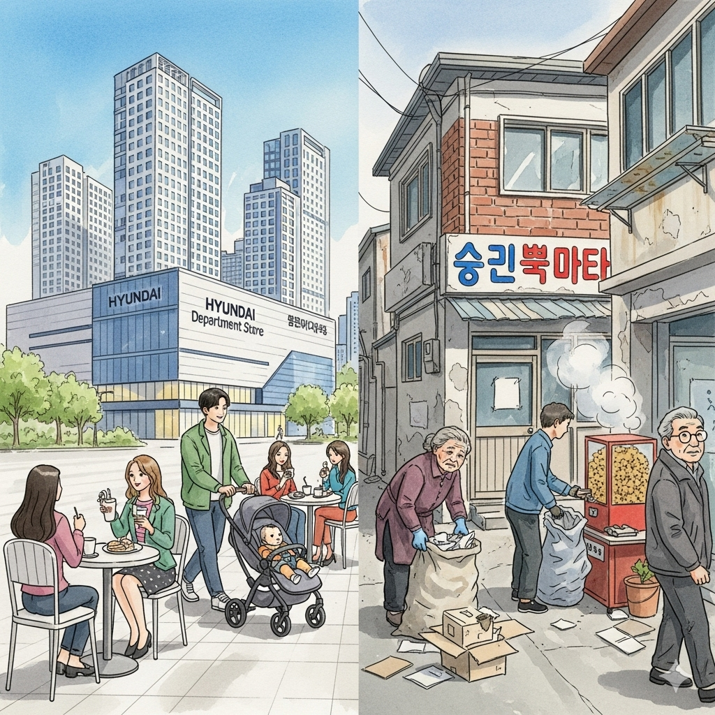 내 주민등록지에는 세련되고 멋진 젊은 부부들이 아기 유모차를 밀고,