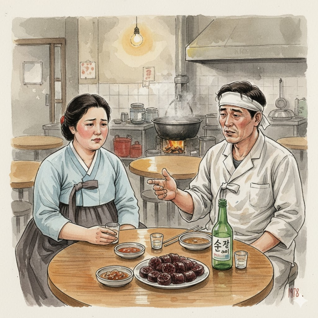 “맞어! 오라버니, 미스리 잘못만은 아닐지도 몰러. 이 세상 자체가 사람 사는 인정보다 돈이 더 무서운 힘을 갖고 있응게. 돈이 사람의 마음을 꺾고, 돈이 사람의 도리를 무너뜨리지. 우리가 아무리 진한 국물을 끓여도, 그 국물을 맛볼 여유조차 돈이 허락해야 하는 세상이니까.”